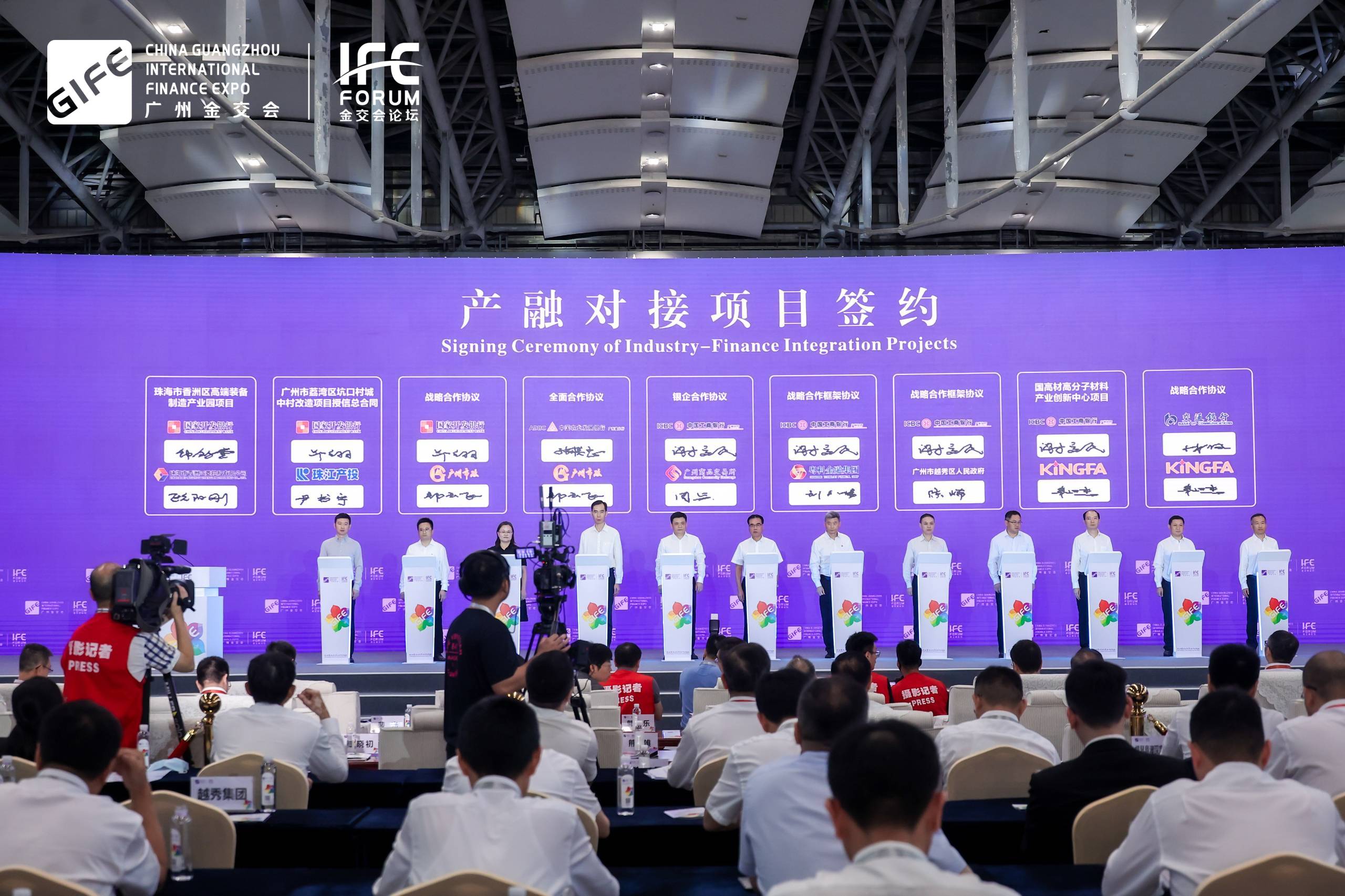 在當天舉行的啟動儀式上,舉行產融對接項目簽約,其中,實際簽約項目20個,意向簽約項目47個,涉資3349.584億元。包括:大灣區特殊資產賦能服務平台、大灣區特殊資產研究院、大灣區國有特殊資產託管服務中心(籌)、廣州擔保集團有限公司、廣州期貨研究中心、廣州民間金融消費者保護中心、廣州市越秀區養老金融服務家(+)等7家金融平台授牌成立。